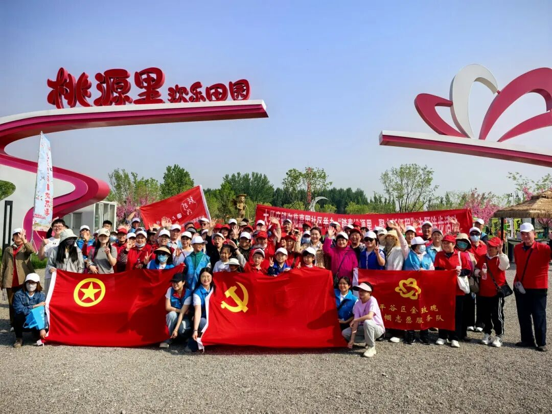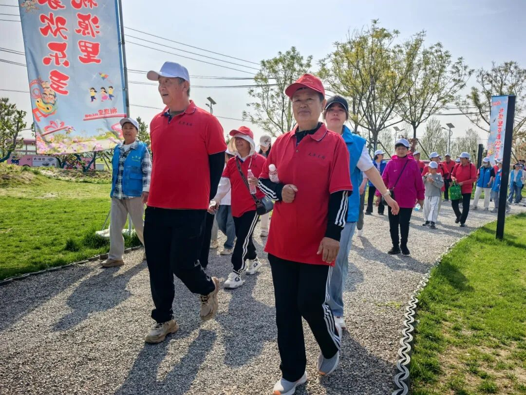 活动当天,居民们在工作人员引导下,有序签署安全承诺书、领取统一活动T恤,现场秩序井然。主持人详细讲解活动流程、目的及安全注意事项后,大家搭乘大巴前往桃源里景区,正式开启徒步之旅。行进途中,居民们沿着规划路线结伴前行,一路欣赏春日大兴庄美景,畅谈家常趣事,彼此互帮互助,欢声笑语不断,尽显邻里和睦的温馨氛围,大家驻足合影,用镜头定格春日美好与邻里温情。