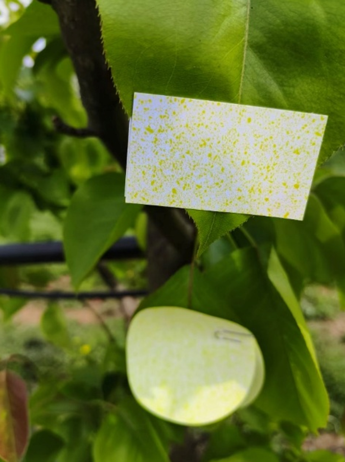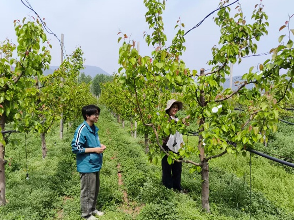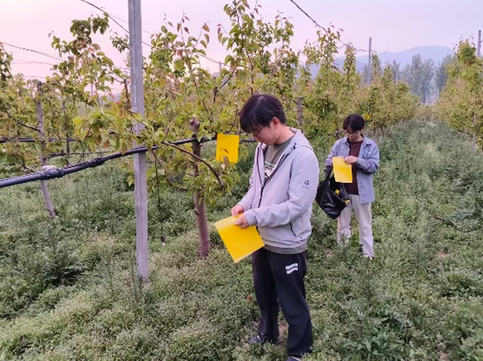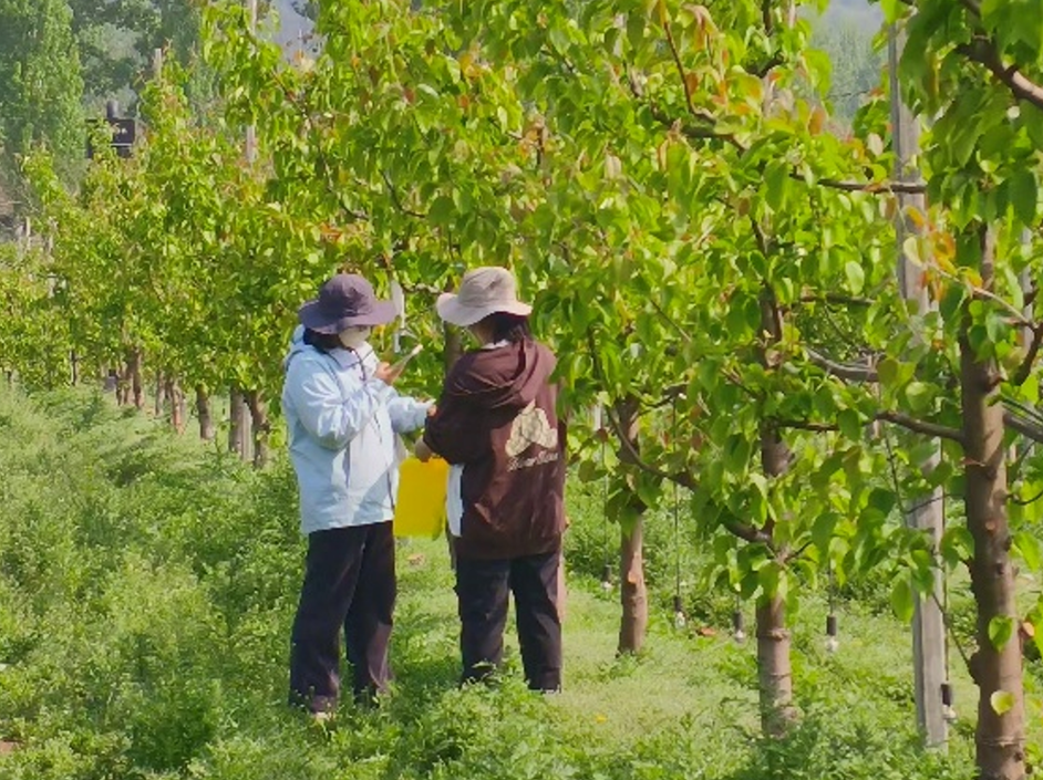实践期间,博士生余忠义带领小院学生深入梨园一线,全程扎根田间地头,认真倾听果农在花期打药时遇到的难处和实际需求,摸清落花期打药的关键要点,同时细致排查虫害情况,记录下虫害的种类、数量和分布,为后续工作做准备。
