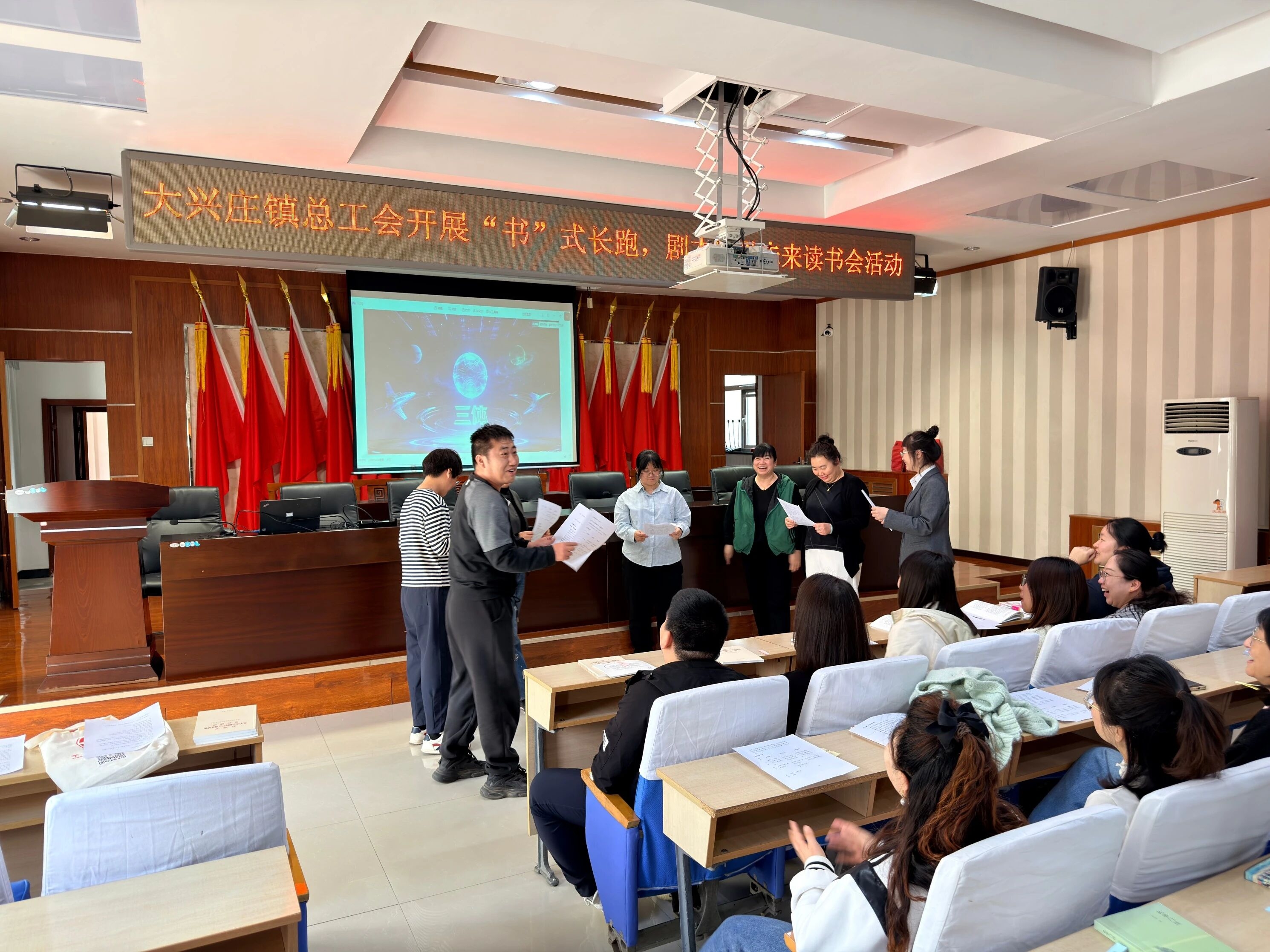 为迎接第29个“世界读书日”,近日,大兴庄镇总工会开展“‘书’式长跑·剧本阅见未来”主题读书会活动,吸引辖区内40余名职工读书爱好者参与。