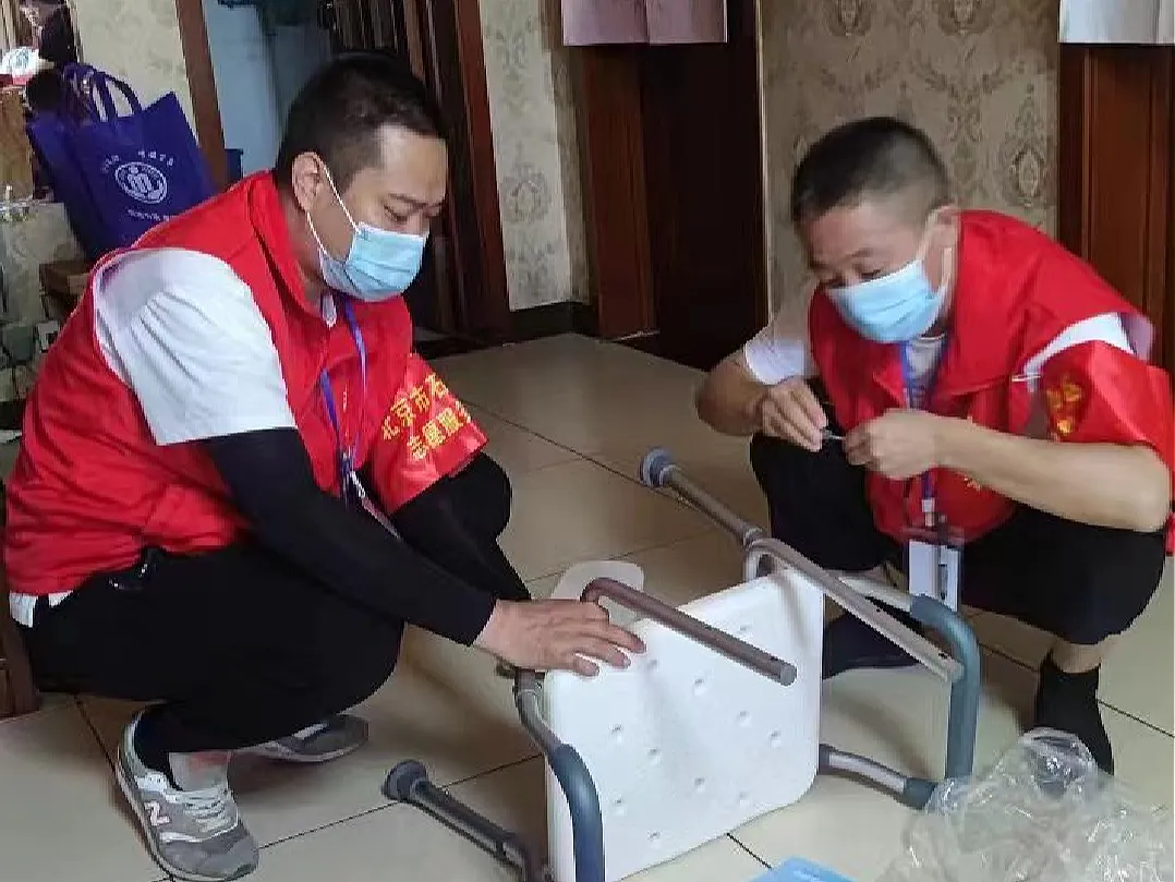现场,工作人员组装并测试了防滑助浴椅,在使用助浴椅的过程中,工作人员还提供了相关的使用指导和注意事项,以确保服务对象和家人的安全。同时,也提供了必要的培训和支持,以确保家人能够正确地使用和维护助浴椅。