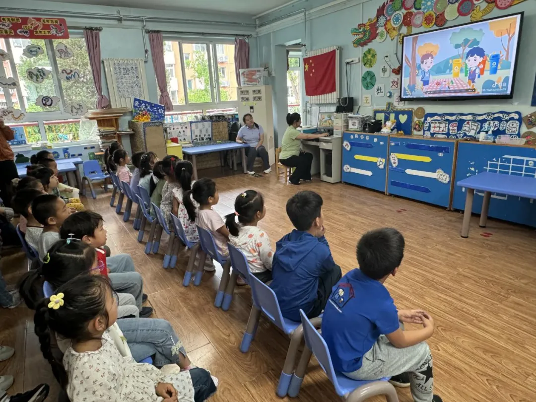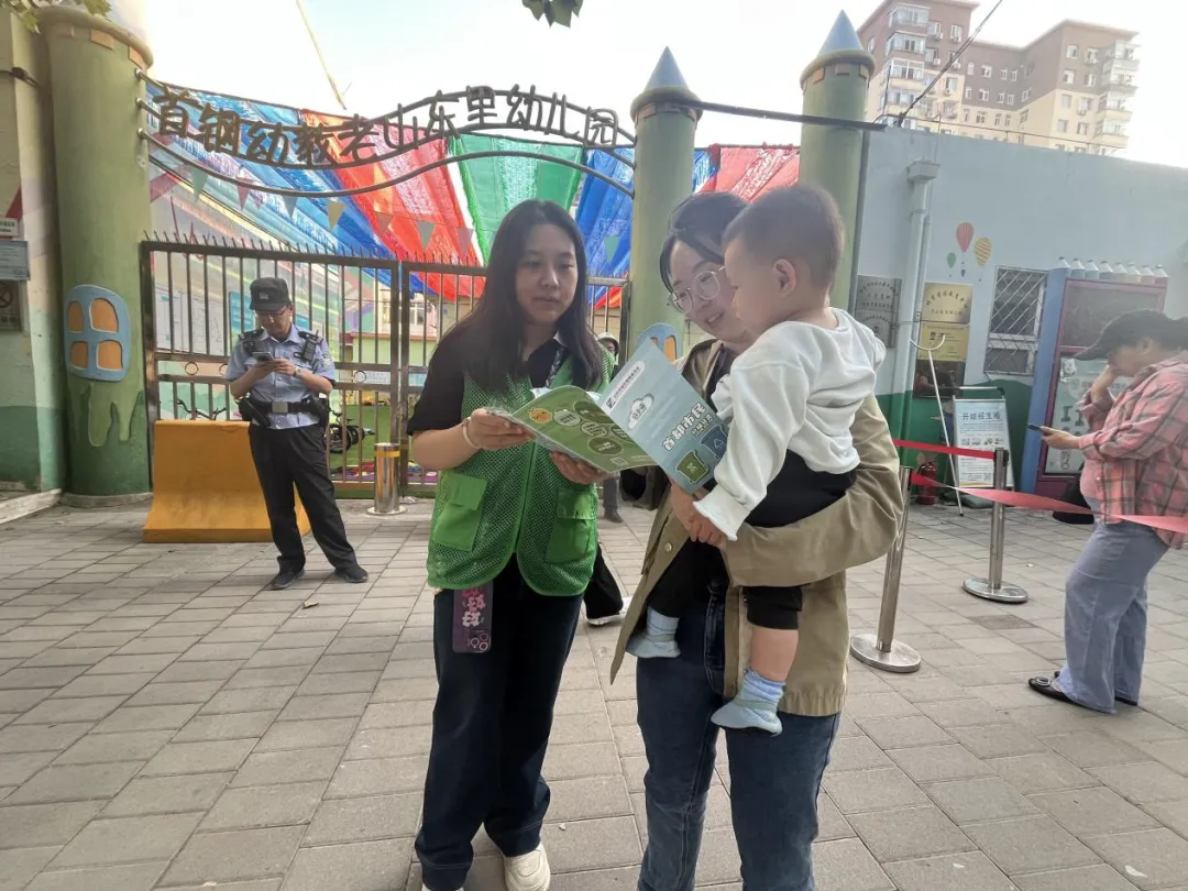 为培养幼儿环保意识,助力社区垃圾分类工作落地,老山西里社区与首钢幼教老山西里幼儿园共同开展宣传活动。活动中,社区志愿者通过垃圾分类宣传短片,用垃圾分类卡片与孩子们一起学习垃圾分类知识,鼓励他们回家后和家长分享所学。此外,社区还在幼儿园门口设置宣传展台,为接送孩子的家长发放分类指南,倡导全家参与垃圾分类,形成“教育一个孩子,影响一个家庭,带动整个社区”的良好氛围。