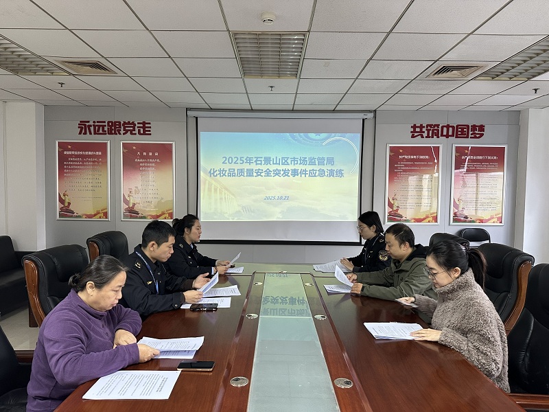 为检验我区化妆品安全突发事件的应急处置能力,强化实战意识,加强应急训练,锻炼处置队伍检查备战状况,切实提高应对化妆品安全突发事件组织协调和处置能力,2025年10月21日,石景山区市场监管局组织开展了2025年度化妆品安全重大突发事件四级应急演练。