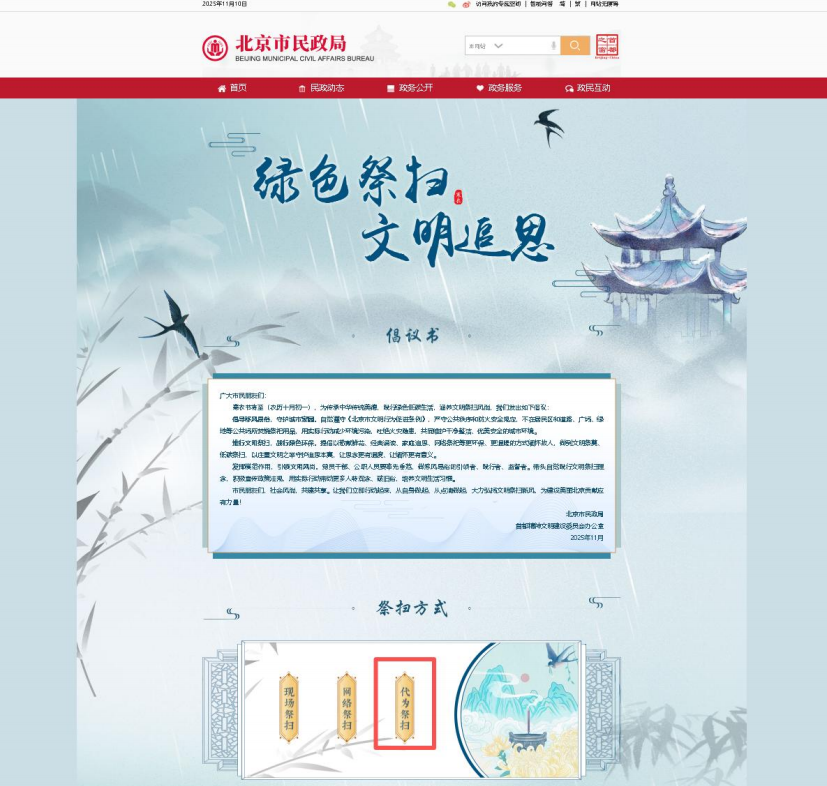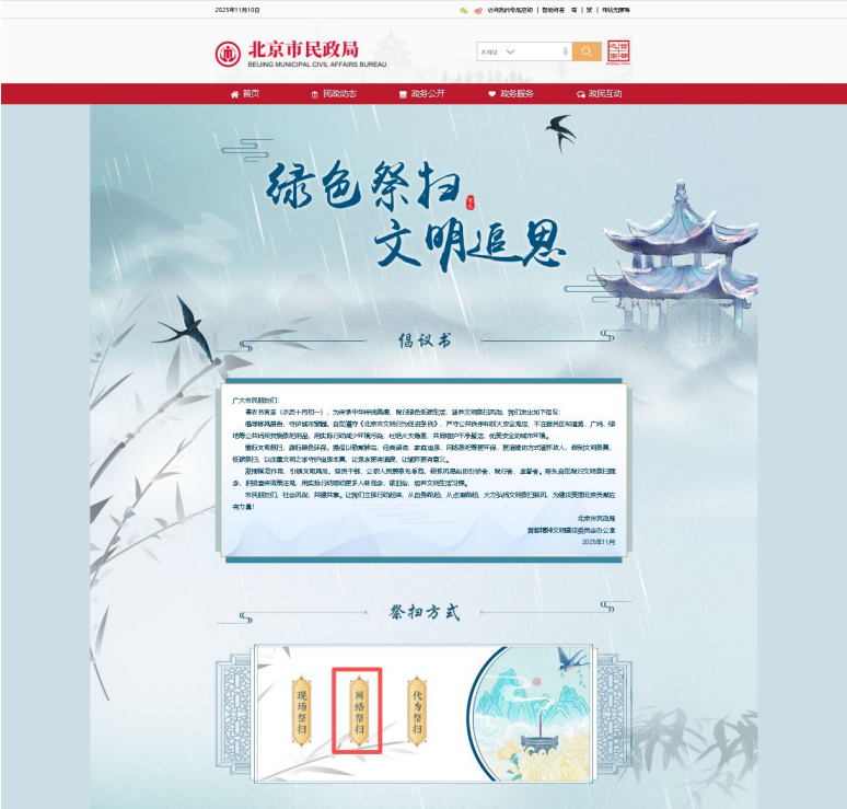 1.点击进入“2025 年寒衣节祭扫专题”页面。(https://mzj.beijing.gov.cn/col/col10890/index.html)