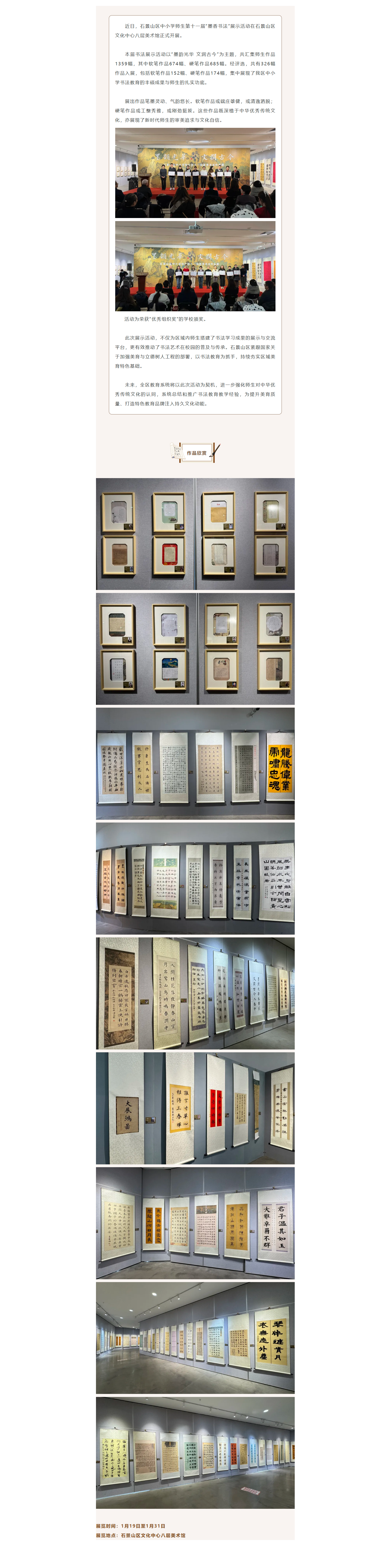 来源:石景山区教委、北京石景山 墨韵光华 文润古今——石景山区中小学师生第十一届“墨香书法”展示活动开展