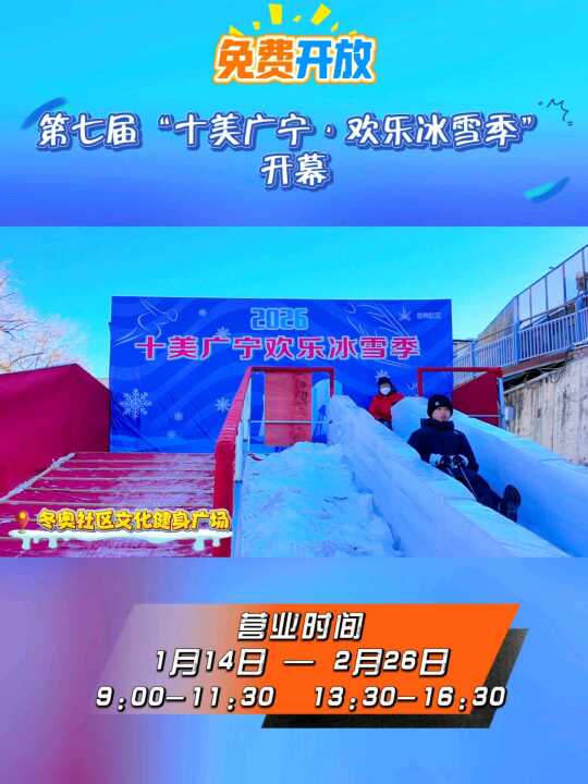 活动将持续至2月26日,每日开放时段为9:00-11:30和13:30-16:30。活动现场位于高井路冬奥社区文化健身广场内,设有冰车、冰三轮车、冰上小海豚等项目。
