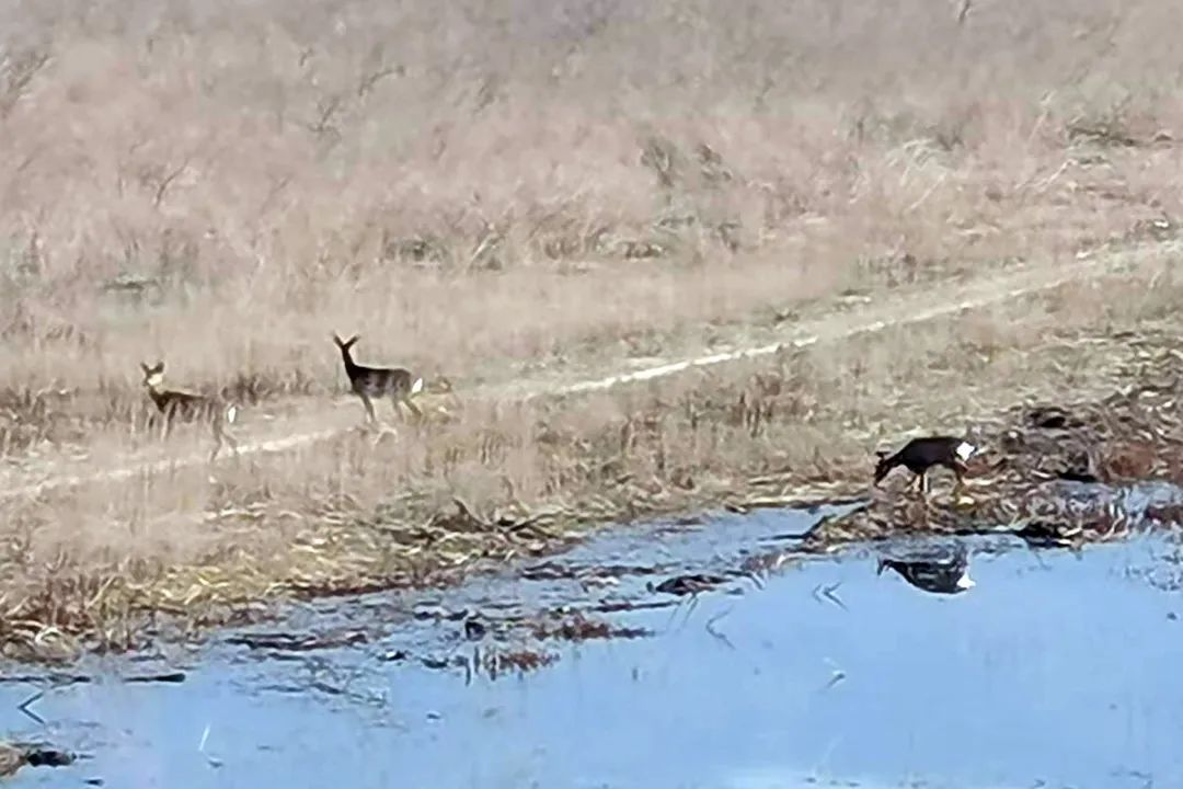 11月12日上午,唐指山水库工作人员在巡查时发现三只野生狍子在水边觅食。它们的身体呈现出灰褐色,在阳光的照耀下显得格外柔和,脑袋上竖着两只大大的耳朵,眼睛透露出一种天真无邪的气质。