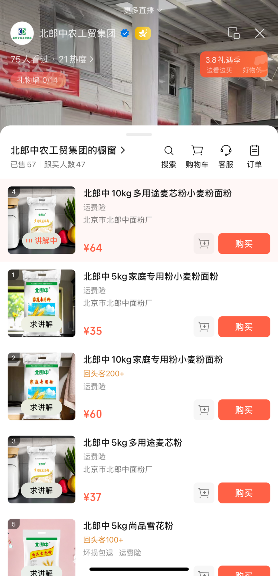 为啥刚开播不久就能有不错销量?北郎中电子商务运行部经理直瑞宣道出“流量密码”:“一是我们北郎中的面粉本身品质就比较好,二是老百姓也认这个品牌。”