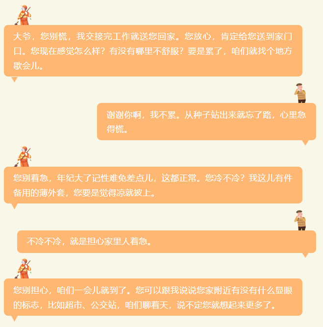 经沟通得知,老人今年81岁,家住前鲁各庄村,当天独自坐公交车前往北小营种子站买化肥,因为对周边环境不熟悉,返程时迷失了方向,记不清回家的路线了。考虑到天气及老人的身体状况,单德森第一时间将情况详细上报给片区负责人,在协调其他保洁员接替自己的工作后,他用自己的电动车送老人回家。在交接工作和送老人返程的路上,单德森不忘安抚老人紧张的情绪,随时留意老人的状态。