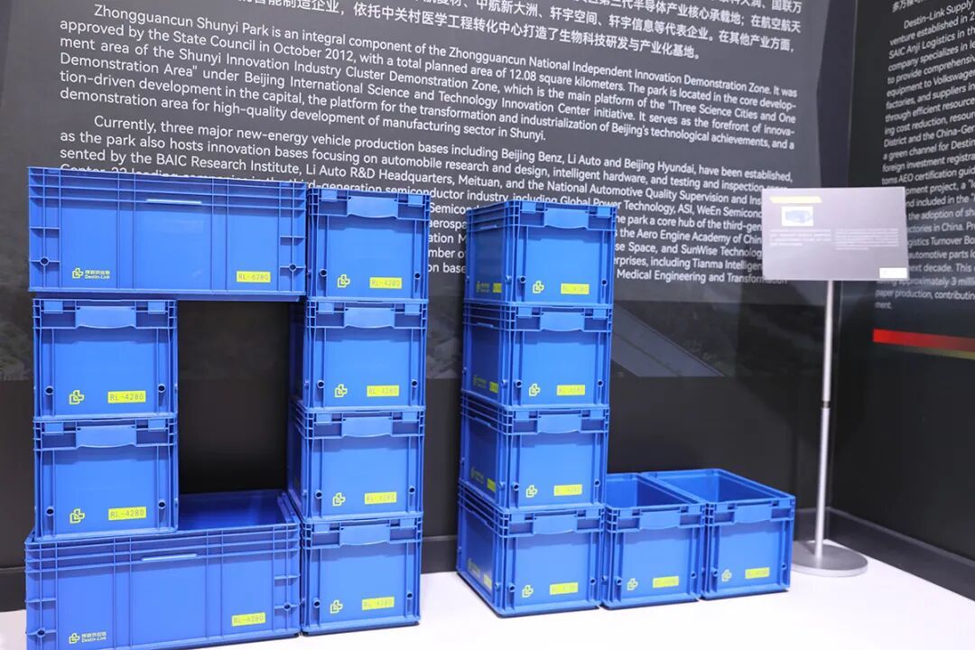 得联供应链管理(北京)有限公司展示其可循环物流器具。