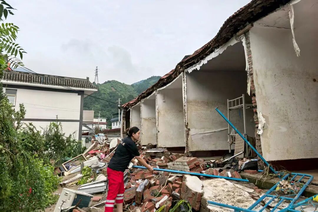 许晓娜在怀柔区琉璃庙镇安州坝村参与救援。