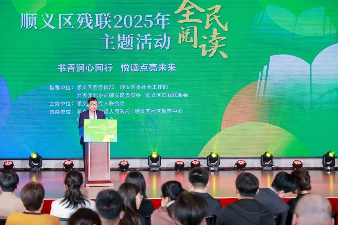 李之星在顺义区残联2025年全民阅读主题活动上分享“我与阅读”的故事。