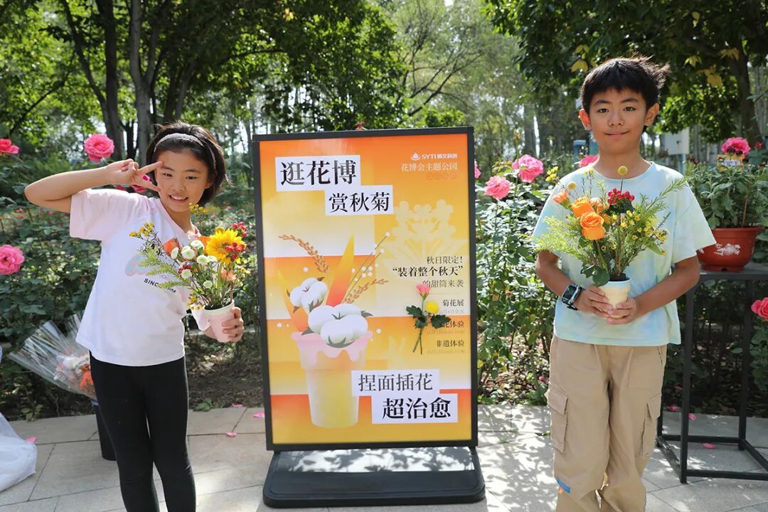 走进花博会主题公园,浓浓的节日气氛扑面而来。这里正在举办的菊花文化展,宛如一场菊花的盛宴,汇聚了“黄千丝”“粉国华”“红绣球”等20余种传统名品,吸引市民驻足拍照。