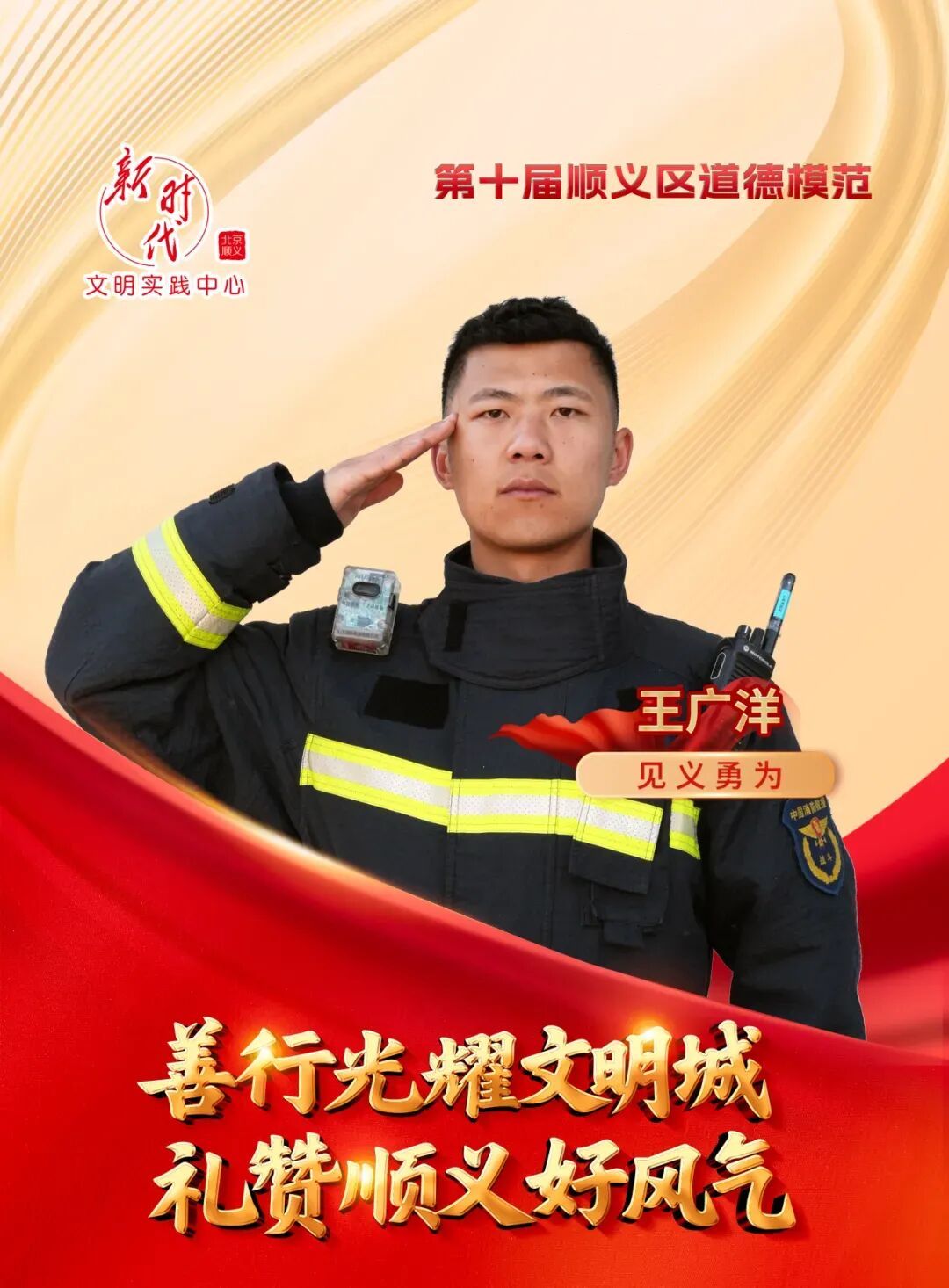 王广洋,是北京市顺义区消防救援支队李遂消防救援站战斗二班班长、专职消防员。