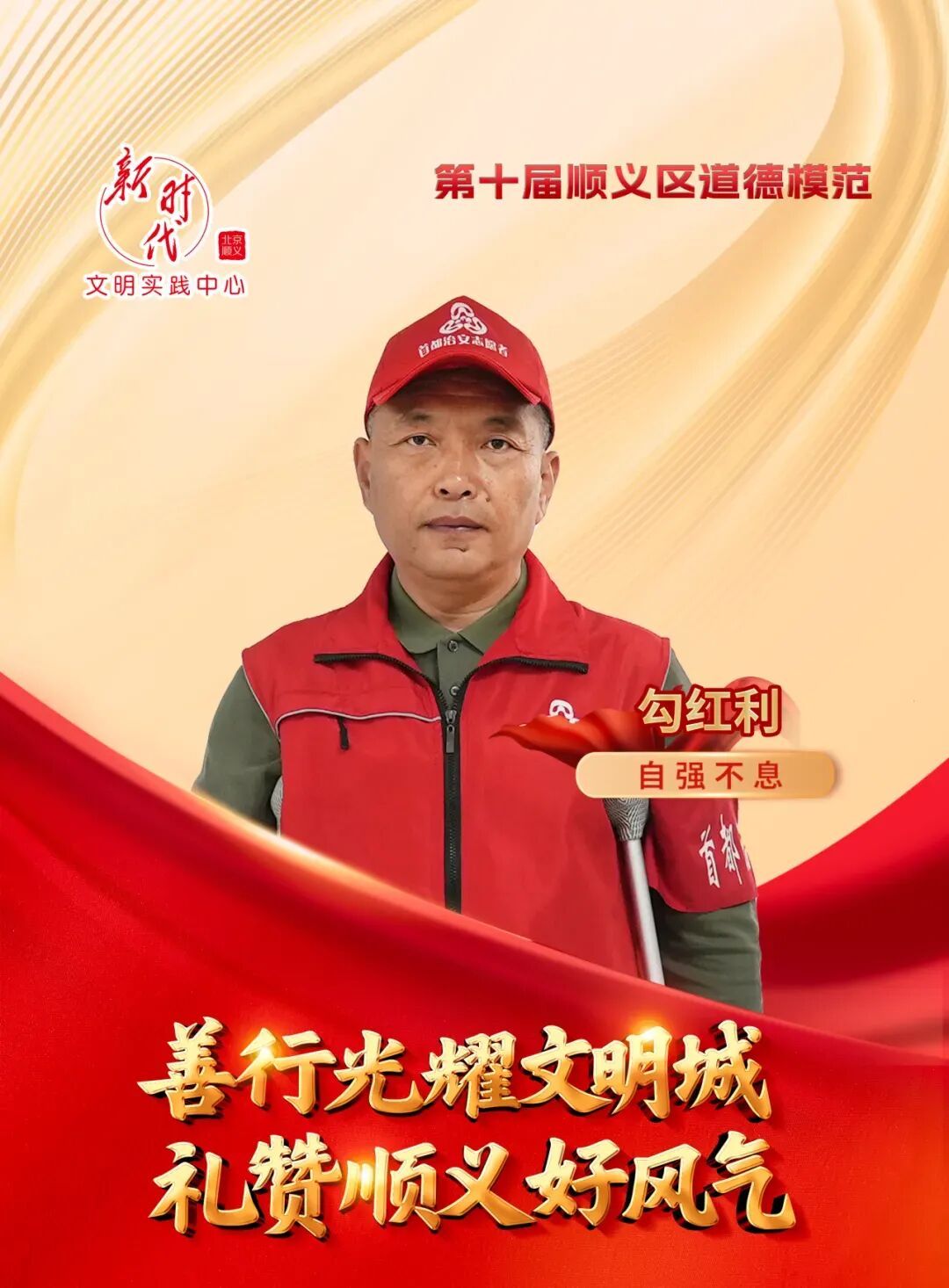 勾红利是顺义区石园街道石园北二社区居民。2000年,复员转业后担任司机的勾红利经历了一场交通事故,造成他左腿截肢,不能再参加单位工作。