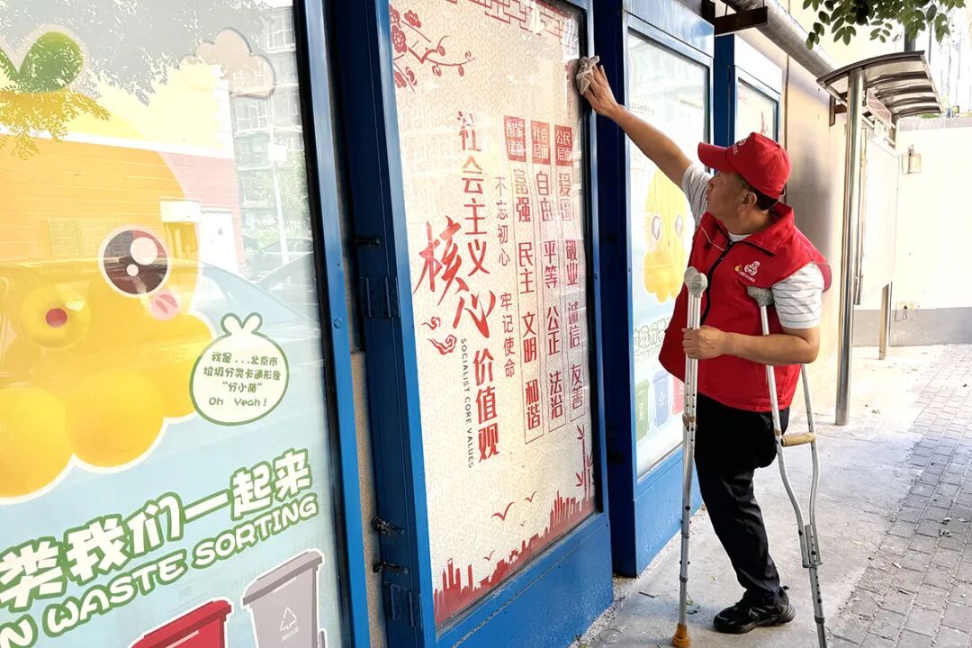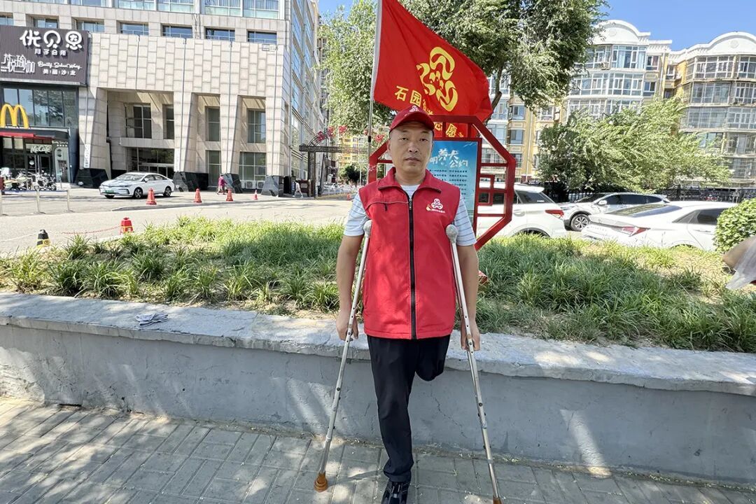 但身残志坚的勾红利并没有因为自己的身体残疾就怨天尤人。他主动申请加入社区志愿服务队,无论是烈日炎炎的酷夏,还是寒风凛冽的严冬,自行车码放、交通引导、垃圾分类、治安巡逻等岗位都有他的身影,一干就是18年。