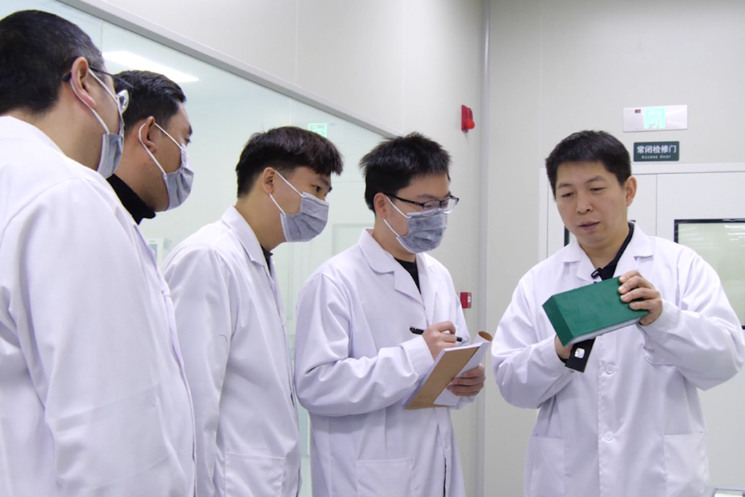 柳志民(右一)和研发团队讨论相关技术问题。
