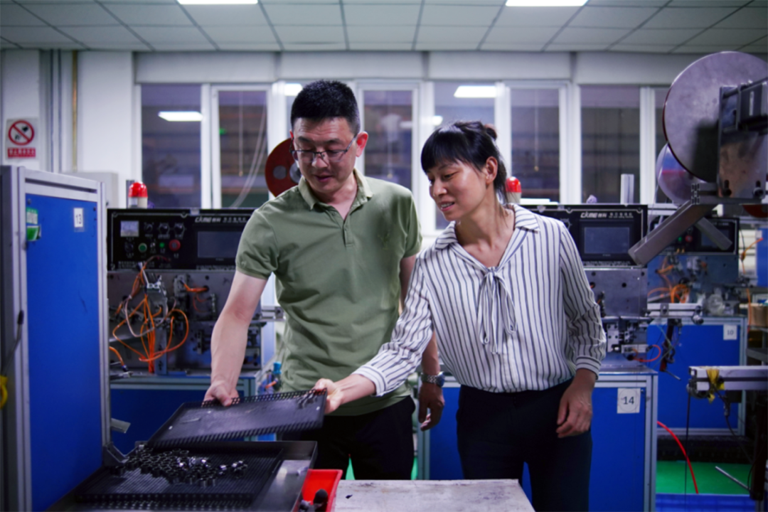 郑雷伟与丈夫在车间检查设备。