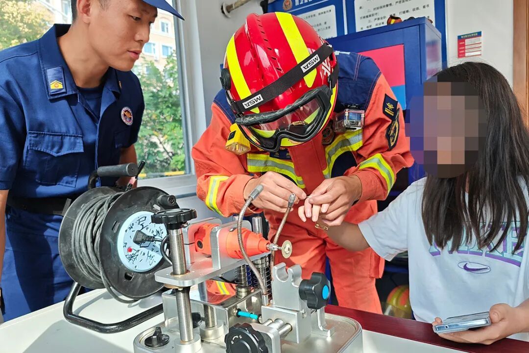 不到10分钟,随着“咔嚓”一声轻响,指环被切开一道裂口。救援人员立刻关掉机器,换用两把钳子将指环彻底掰断,指环被成功取下。救援人员立即检查女孩手指状况,确认手指完好、血液循环逐渐恢复才彻底放心。