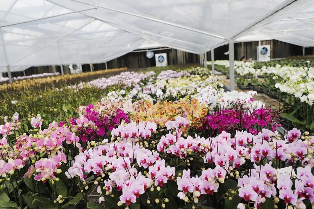 北郎中花木中心内正在培育的“超大杯蝴蝶兰”。