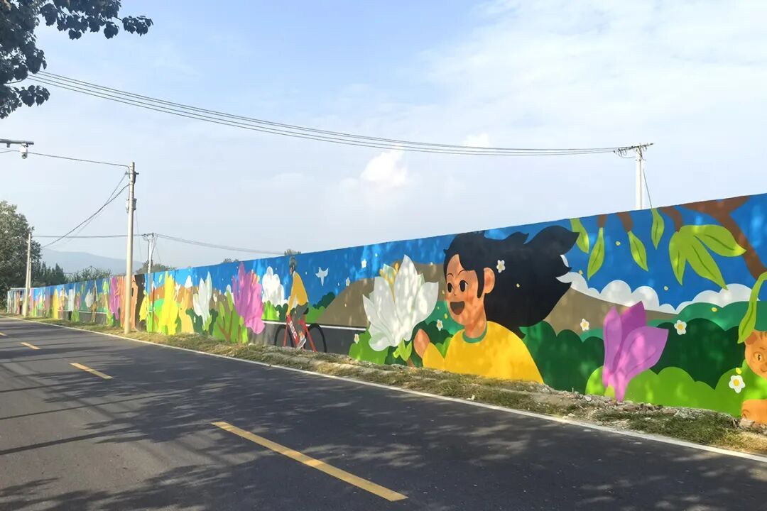 开车经过北石槽镇良善庄村的茶良路,你一定会被那道116米长的彩绘墙吸引。曾经墙皮脱落、色调暗淡的老围墙,如今变成了一座开放的“露天美术馆”。