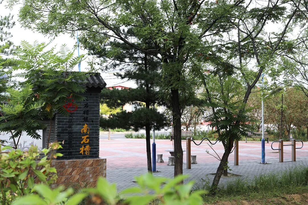 北石槽镇怀昌路路侧的休闲广场和墙体彩绘。