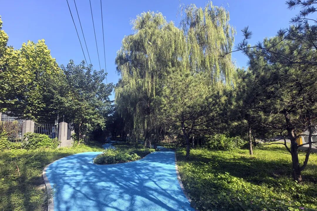 高丽营喜知路一侧设计了健身步道。