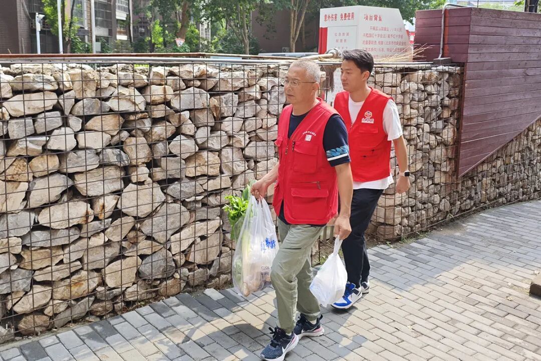 赵国栋(前)将代买的蔬菜和药品送上门。