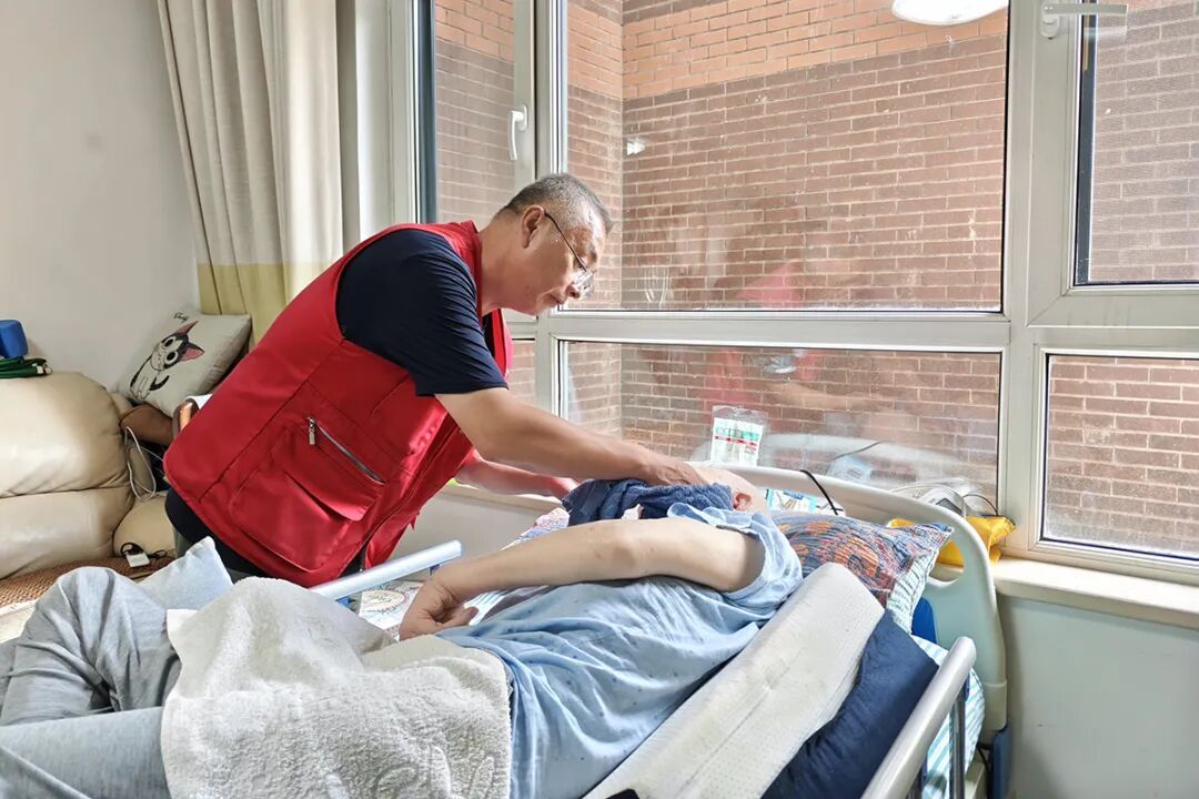 随后熟练地帮瘫痪在床的老人