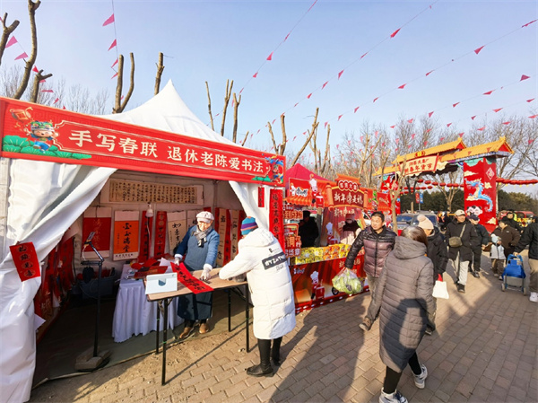 漷县,因运河而生、靠漕运而兴,昔日南北物资交汇的繁华码头,如今在新春时节重焕商业活力与市井烟火。年货节首日,现场人声鼎沸、暖意升腾,墨香与年味在熙攘人群中交织弥漫——书法爱好者们案前挥毫,笔走龙蛇间,一幅幅红彤彤的“福”字跃然纸上,刚落墨便被市民争相领取,指尖传递的不仅是新春祝福,更点燃了全场的红火氛围;叫卖声、讨价声、孩童的欢笑声与远处游艺区的喝彩声交织在一起,奏响了最鲜活的新春序曲。