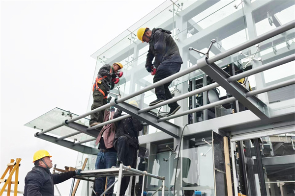 在首都公共艺术创作基地停好车后,穿过一片办公楼,拾级而上,一处二层的公共服务驿站跃入眼帘。这是启动段的配套服务设施,该驿站拥有通透的落地窗、开阔的二层平台,未来开放后,将成为六环高线公园的智慧化管理核心,为骑行、遛弯儿的人们提供智慧化便捷服务。