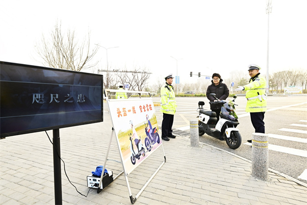 “5月1日之后就必须强制戴了,不戴就要进行处罚。”连日来,通州区持续加强电动自行车骑乘人员佩戴安全头盔的宣传引导工作,并在多个路口提醒市民自觉佩戴头盔,养成安全出行的良好习惯。