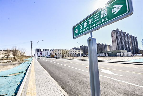 玉桥东三路位于京东运乔建材城东侧,北起运河西大街,南至梨园南街,全长约0.67公里,按城市支路标准建设,红线宽20米,同步配套市政管线、交通标识、绿化及照明设施。道路通车后,串联起周边居民区、学校、商超等公共服务场所,有效分流运河西大街、梨园南街交通压力,缓解区域拥堵,同时提升片区人居环境,让群众出行更安全舒适。