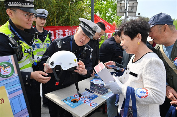 “头盔不是应付检查的,是保命的。要戴国家3C认证的头盔,系好安全扣。”贾子昂拿起一个头盔现场演示,并提醒大家,一旦发生交通事故,有没有头盔、戴得对不对,结果可能天差地别。“这是影响一辈子的事儿,千万不能觉得无所谓。”