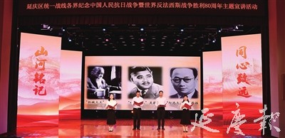 近日,“山河铭记同心致远”——延庆区统一战线各界纪念中国人民抗日战争暨世界反法西斯战争胜利80周年主题宣讲活动在区文化馆小剧场举行。全区各民主党派成员、无党派人士、民族宗教界代表人士、非公有制经济人士、新的社会阶层人士、区欧美同学会、区港澳台侨联谊会代表,以及区委统战工作领导小组成员单位分管负责同志、各乡镇街道统战委员和驻延某部队官兵共200余人参加,共同回顾抗战历史,感悟统一战线力量,凝聚奋进新征程的广泛共识。