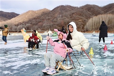 在冰上自行车接力赛中,参赛队员俯身蹬踏,冰车在赛道上划出灵动弧线,每一次接力交接都展现着团队协作的默契;在亲子冰车接力赛中,家长与孩子合力滑动冰车,欢声笑语与加油呐喊交织回荡,成为冰面上最温暖的风景。