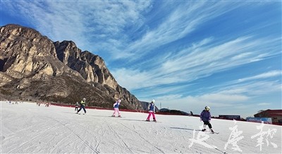 雪道之上,活力满满。新增的中级道魔毯旁,挤满了想要进阶的滑雪爱好者,无需扛板爬坡,轻松登顶便能体验顺畅滑行的快乐;初级道上,滑雪教练正耐心指导着零基础学员:“重心放低”“膝盖微屈”,简单的口令让新手快速入门,不一会儿,便能看到学员们稳稳滑出属于自己的冰雪第一程。张雯棋带着5岁的女儿闫萁玥在此学习滑雪,孩子小小的身影在雪道上慢慢挪动,时不时发出欢快的呼喊,成为动感冰雪季里最萌的风景。“这里的雪场对孩子特别友好,有专门的练习区域,非常安全,而且孩子非常喜欢这里,每年冬季都会来这里滑雪。”张雯棋说。