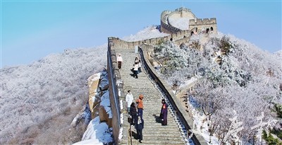 近日,延庆迎来春日降雪,八达岭长城银装素裹,如银色巨龙蜿蜒于群山之巅。远山、林木、城墙融为一体,云雾轻绕,意境悠远,宛如一幅天然的中国水墨画,尽显雄浑壮阔与诗意柔美。