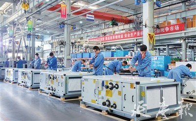 “我们的生产线,兼顾了精度与速度,这是传统生产模式难以比拟的。”环都拓普市场部经理沙得龙指着快速运转的生产线介绍,数字激光切割机通过激光束的极高能量不需要任何模具和刀具就能加工出各种形状的钢板,就像一台打印机,加工精度可达到0.01mm;全自动折弯机通过系统编程,可实现多个轴体的并发联动,多边折弯一次成型;数控冲床每台最多可预装58套模具,效率非常高。依托国家级认证实验室与全流程数字化管理体系,制造基地年产健康节能空气处理设备30万台(套)。与此同时,近乎严苛的生产标准也让环都拓普的产品赢得了客户的高度认可。