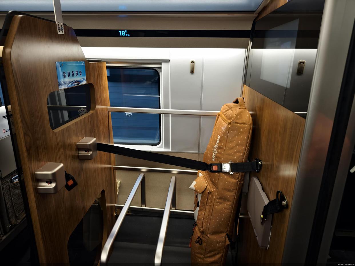 铁路部门推出的“雪具便利行”服务,可谓精准解决了这部分雪友的痛点。考虑到往年大量雪具堆在列车通道位置挤占乘车空间、行李架存放雪有坠落风险,铁路部门此前推出的“雪具快运”服务,已经通过门到门、门到站、站到门、站到站的当日达、次日达等雪具快运服务,为雪友提供了多样化雪具运送选择。“雪具便利行”服务通过适应性改造部分座椅,设置专门的“雪具存放处”,让雪具得以随车随人走。雪友不仅多了雪具运送的新选项,便捷程度也更高。不需要抱着笨重的雪具在火车站找托运点,也不需要到了雪场再等待姗姗来迟的雪具,雪具一路直达,冰雪运动更丝滑,冰雪之旅更流畅。