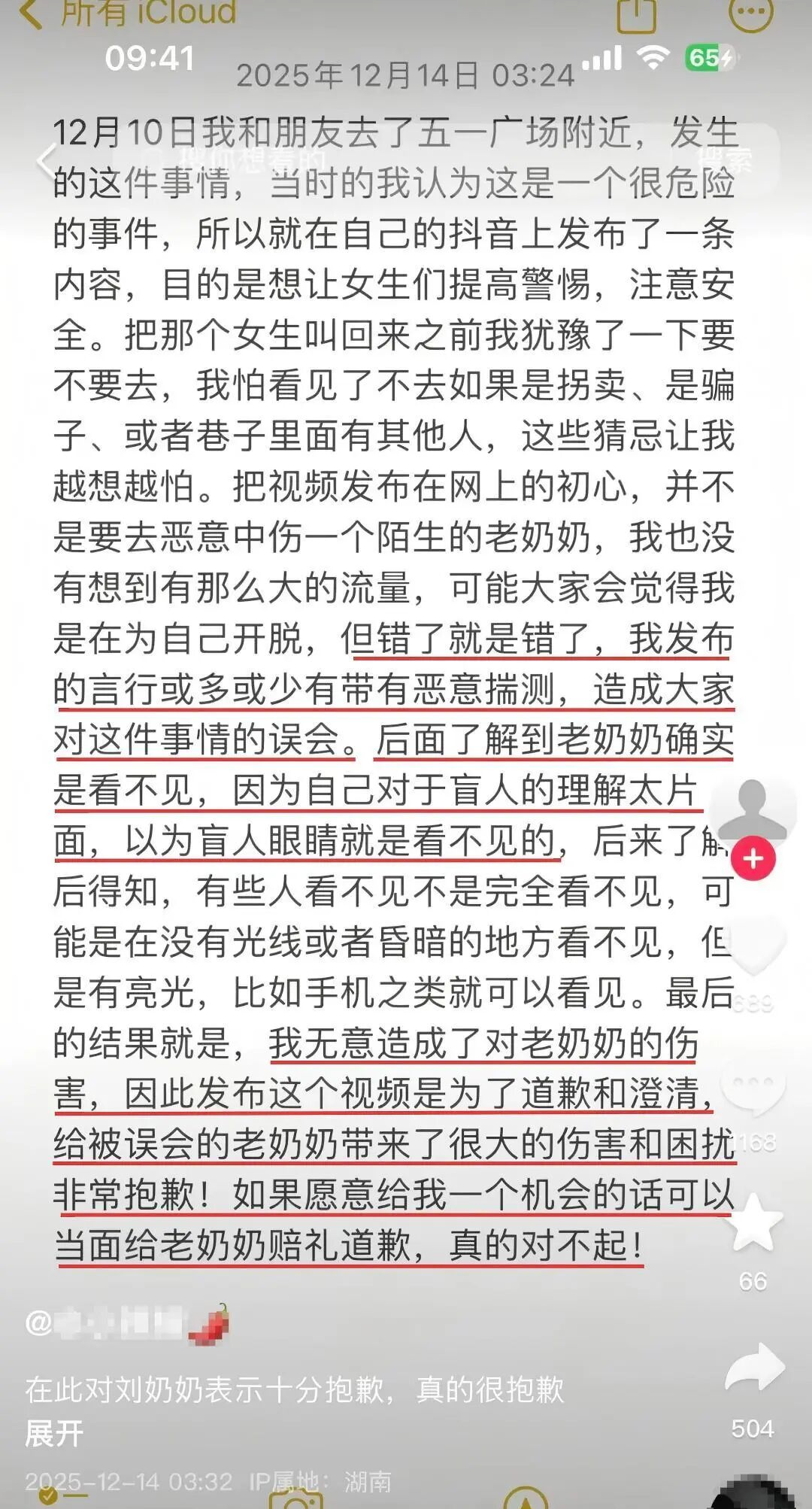 “我无意间对老奶奶造成了伤害,发布这个视频是为了道歉和澄清。如果愿意给我一个机会的话可以当面给老奶奶赔礼道歉,真的对不起!”12月14日凌晨,一名女子称,此前发布视频的目的是提醒女性注意安全,却因言论或多或少带有恶意揣测,给他人造成伤害和困扰,对此女子深感抱歉。
