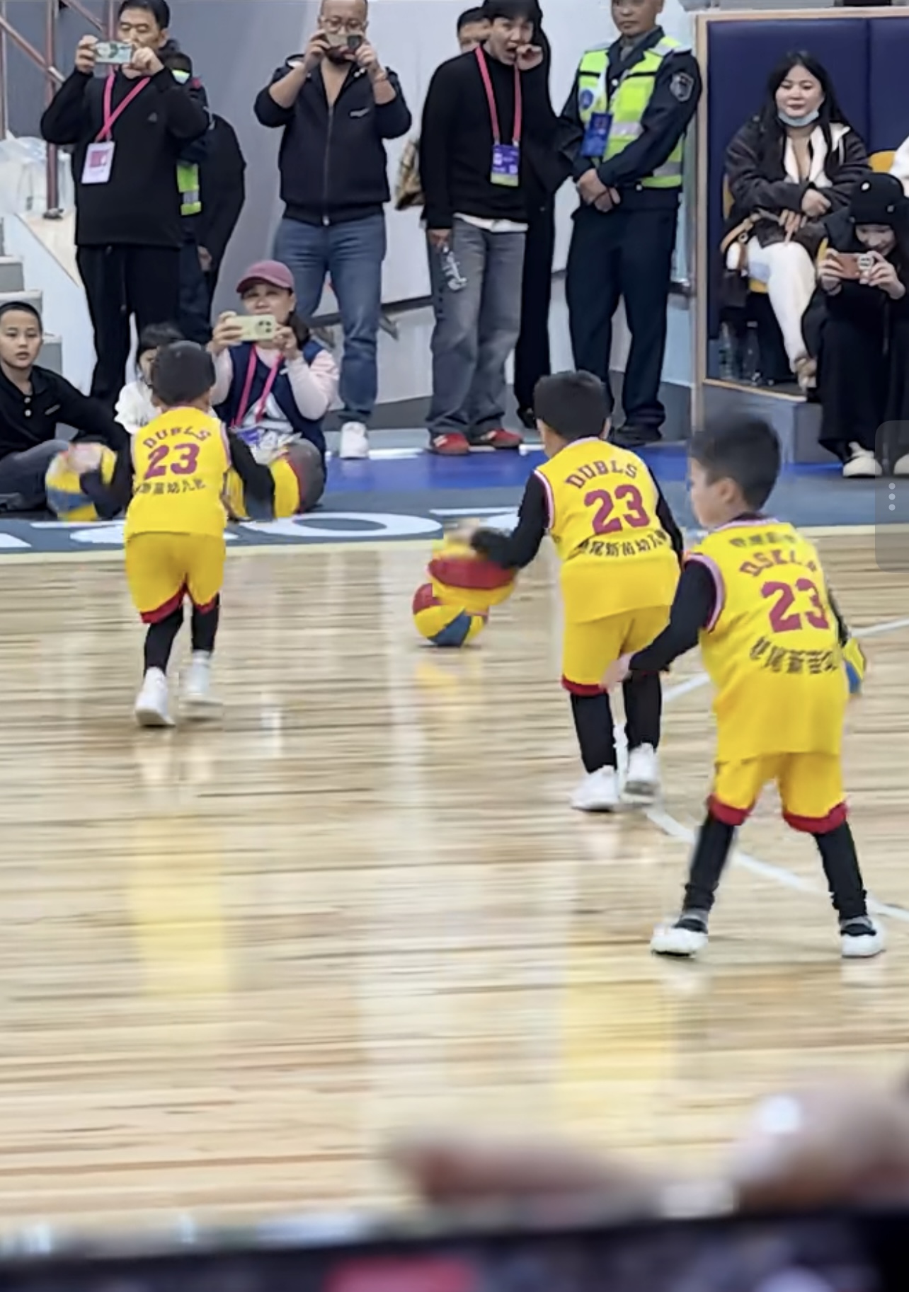 从现场观众在不同视角录下的视频里,可以拼凑出一个细节:小朋友丢球后,一名老师赶忙拿起备用球,蹲在场外暗示孩子们,即将送出新的篮球。可那名沉着冷静的首排小将,及时把刚刚滚出的球踢了回去,加上队友间本能的互助,并没给老师救场的“机会”。小小的失误,不是提前彩排的剧本。孩子们的“战术”,也并非来自场外的指导调度。主动帮助同伴挽回局面的机智担当、尽量自己搞定而不是依赖老师帮忙的自主意识,比精心设计的表演更值得称道,也让人看到孩子身上的美好品质。大家一起全力找回滑落的篮球,不正是对团队精神最好的诠释?