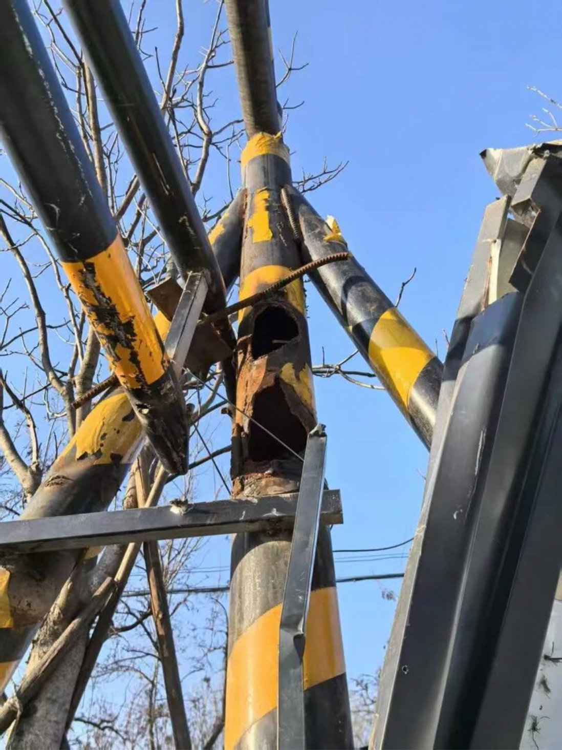 限高杆一端被破坏后抬高。图据北京日报客户端