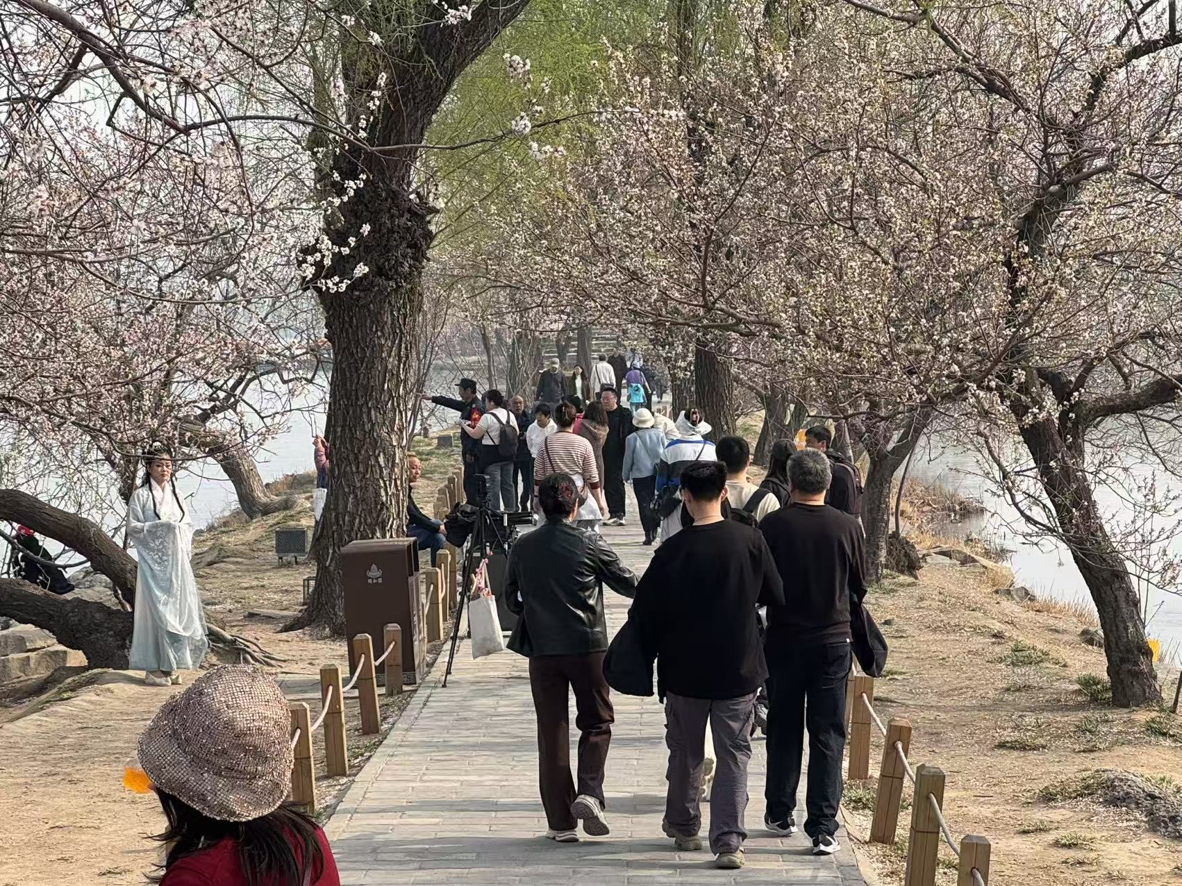 桃浮碧水、柳拂长堤,正是颐和园西堤赏花的好时节。可让不少市民和游客懊恼的是,在西堤走不了几步,总能撞见衣袂飘飘的清宫格格倚着桃枝定格、靠着柳岸取景,各色妆造层层排布,摄影团队支起三脚架、摆满道具箱,把最好的拍景角度圈占封锁。身着古装请专业团队拍摄本身没有问题,但将全民共享的园林胜景当作商拍牟利的专属布景,性质就完全不同。商拍团队一守便是一小时、一见游客靠近就大吼一声“别挡我镜头”,显然以为公共景区就是自家领地。挤占游客赏景空间、消磨大众游园体验、堵塞景区通行道路,无不是以私利侵占公利;训斥游客,更是过于霸道。