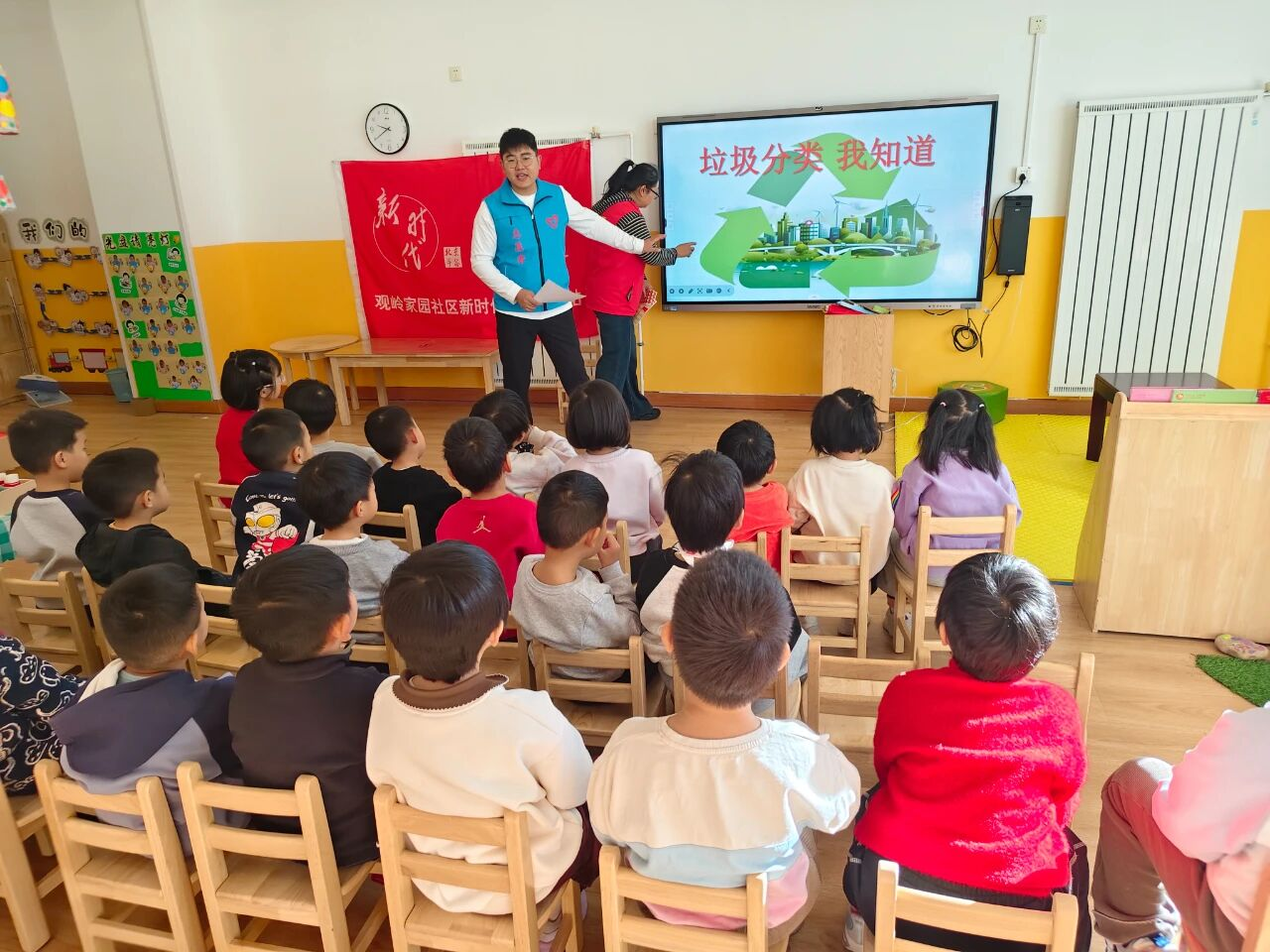 为深化垃圾分类理念普及,推动“家校社”协同育人,引导幼儿从小树立环保意识,观岭家园社区联合幼儿园共同开展“垃圾分类宣传活动”。社区携手幼儿园,结合幼儿年龄特点与生活实际,通过趣味互动、实践体验等多元形式,让垃圾分类知识走进幼儿生活。