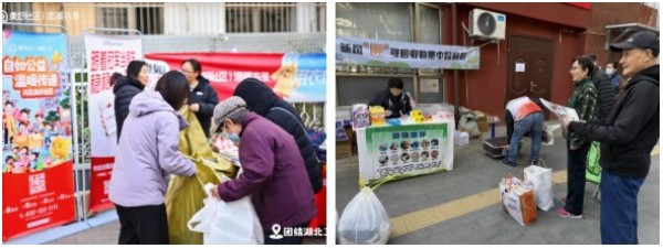 垃圾分类的有效推进离不开社会各界的协同发力。团结湖街道积极探索社企联建模式,凝聚共建合力。中路北社区携手链家,为坚守岗位的垃圾分类志愿者送上保暖手套,以贴心关怀致敬志愿者的无私奉献,进一步激发了志愿服务热情。三四条社区、白家庄东里社区则联合自如、链家等企业,开展旧物回收、冬衣捐赠等公益活动,既实现了资源循环利用,又搭建起便捷的公益平台,形成“社区牵头、企业助力、居民受益”的良性共建格局。