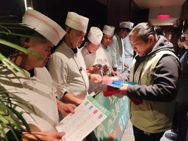 在源头减量环节,团结湖街道三四条社区精准聚焦餐饮行业痛点,开展“垃圾分类进餐厅”主题活动。社区工作人员走进北平食府等餐饮商户,创新推行“三讲三促”宣教模式。通过讲解垃圾分类政策法规,明确商户主体责任;分享垃圾减量实用技巧,倡导“光盘行动”并减少一次性用品使用;现场演示蛋壳、大骨头等易混淆垃圾的正确分类方法,引导商户实现从“要我分”到“我要分”的思想转变,让环保责任成为餐饮经营的竞争力之一,为垃圾资源化利用筑牢源头基础。