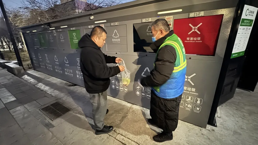 冬季气温走低,垃圾分类桶站值守人员仍需在户外长时间坚守,早、晚高峰期引导居民正确分类投放垃圾,工作条件较为艰苦。