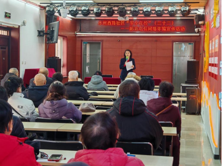 为切实提升辖区居民的网络安全防范意识,筑牢财产安全防线。近日,门头沟区水闸西路社区开展“安全夜校”防范电信网络诈骗宣传活动。