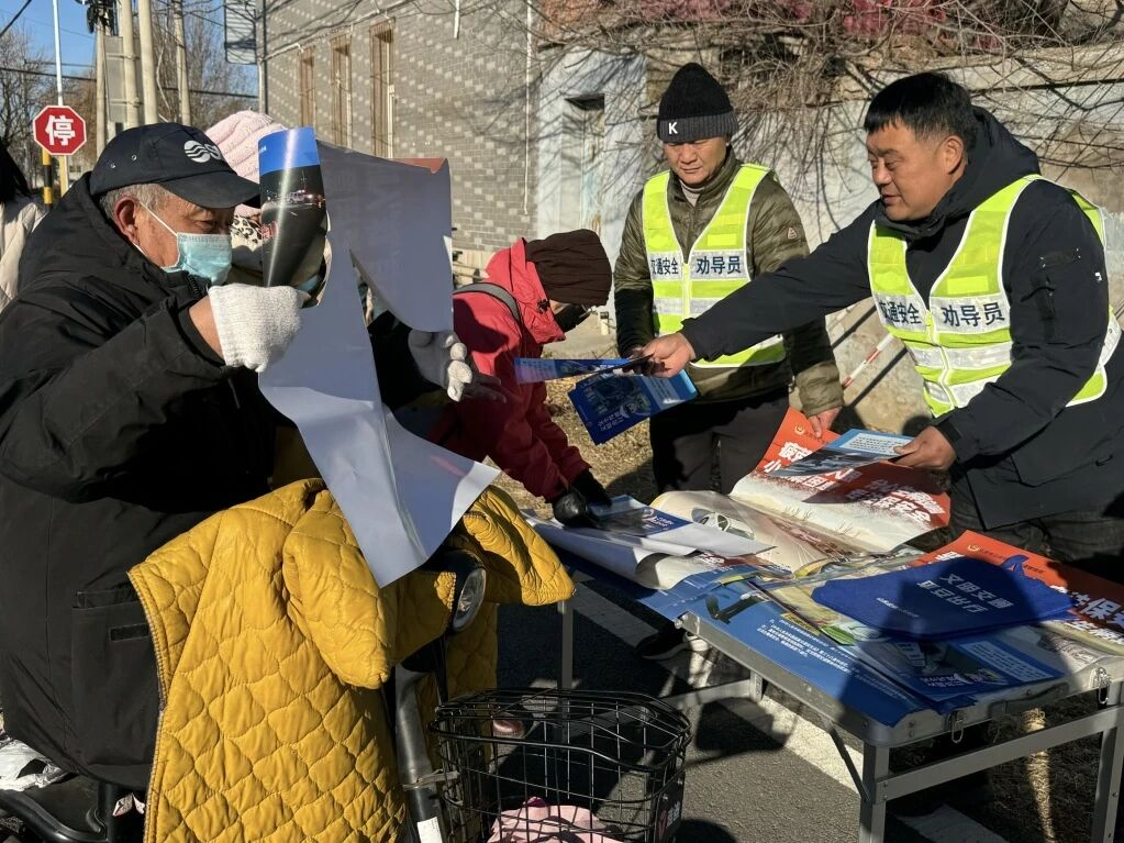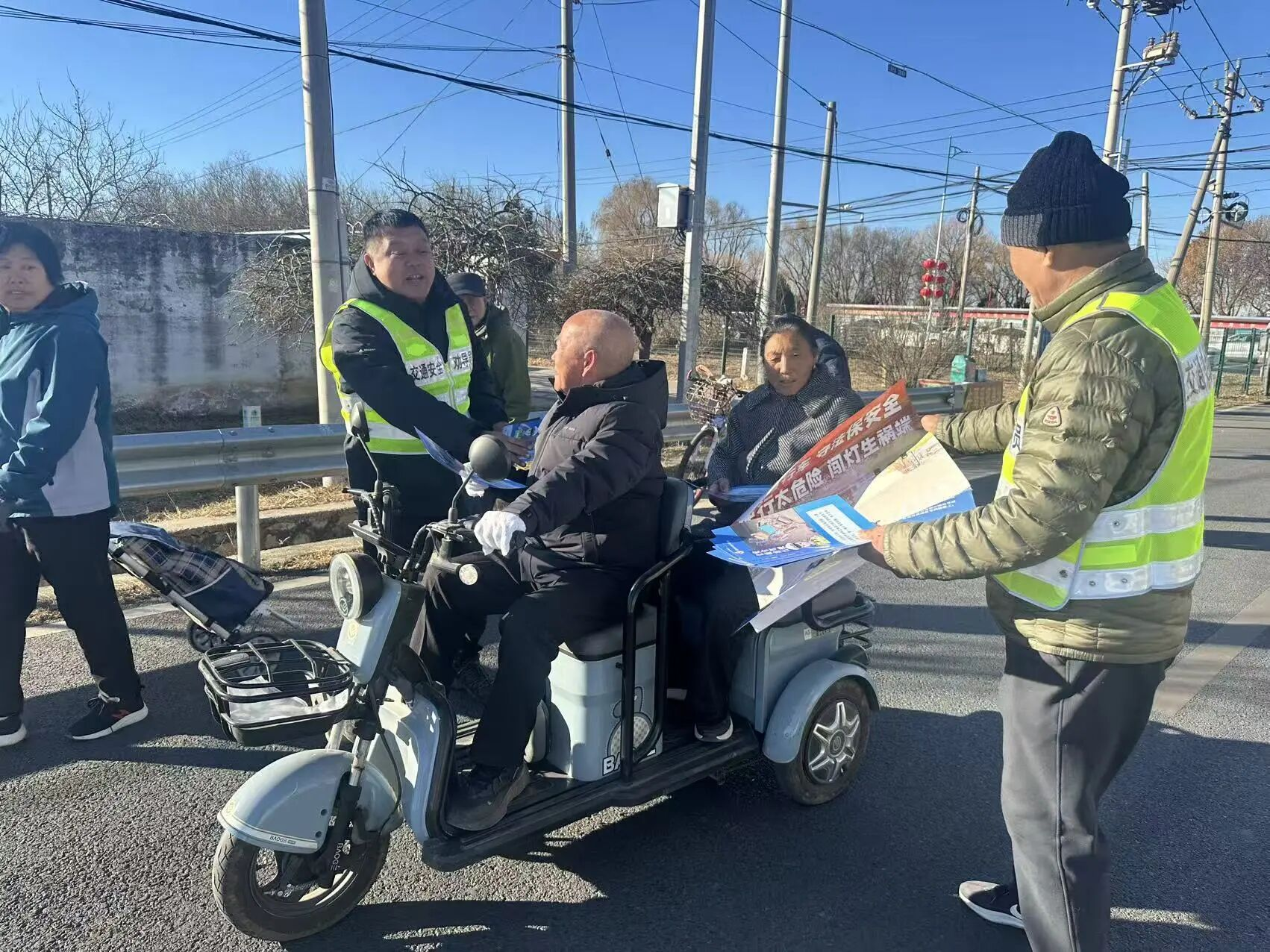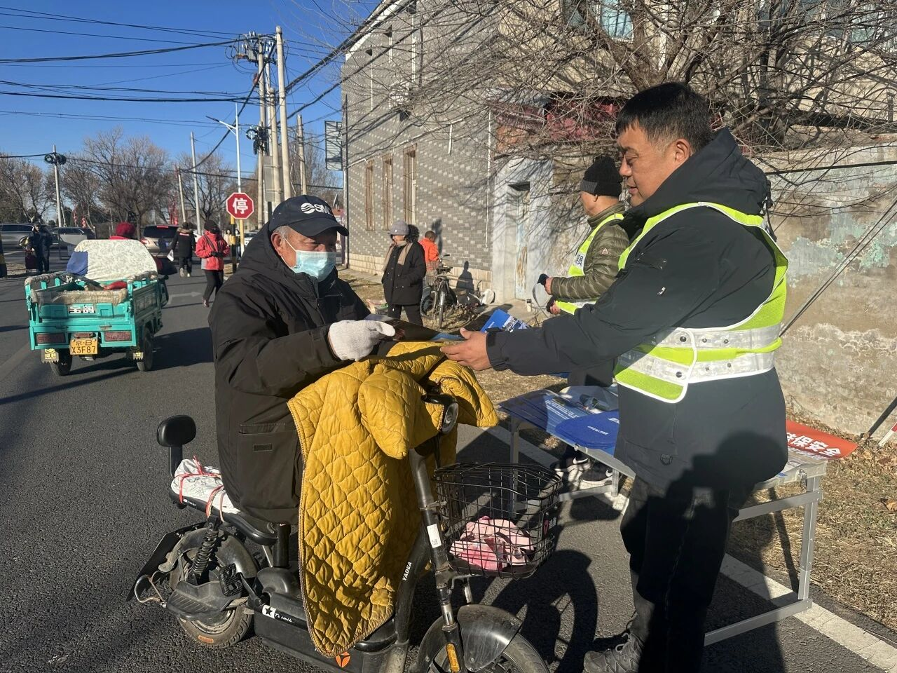 活动中,工作人员与交通安全劝导员在山东庄大集主要路口及人车密集区域设立宣传点位,向过往群众发放交通安全宣传资料,并结合真实事故案例,详细讲解电动三四轮车违规载人、不按车道行驶、随意穿行等行为的危害性。针对正在使用电动三四轮车的车主,劝导员主动上前开展“面对面”安全提醒,督促其自觉做到不非法改装、不超员载客、佩戴安全头盔,养成良好的交通出行习惯。
