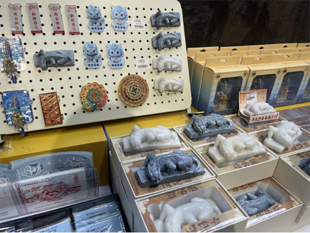 正阳桥遗址考古方舱内以镇水兽为主题的文创产品。张群 摄